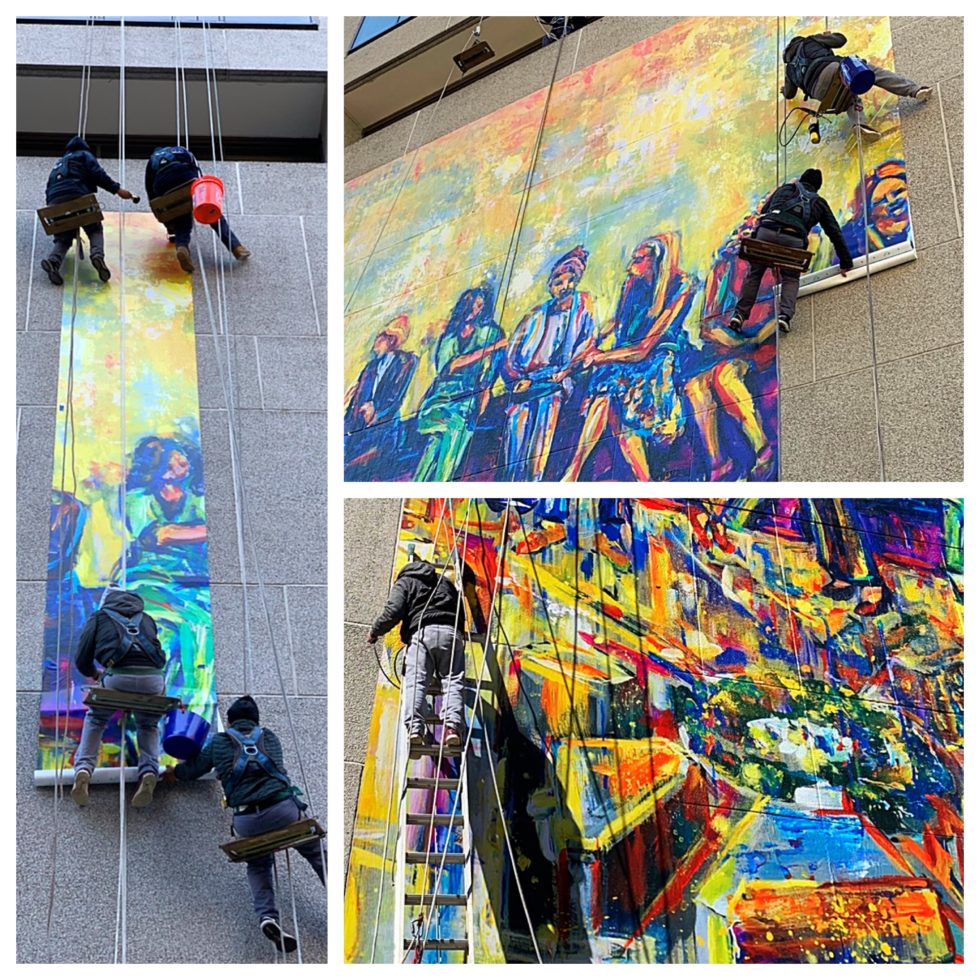 I am intensely proud to be a woman entrepreneur and business owner in Washington, DC, so when asked to create a mural by Lyft & Tishman Speyer that highlights DC women-owned businesses, I jumped at the idea. I thought that the image of “Lunch Atop a Skyscraper” was inspiring with a rich metaphor for what is required to build anything. The camaraderie, risk, and courage it takes to work together and the results that you can expect from that hard work. It made sense to re-imagine this image with women working over the DC cityscape.